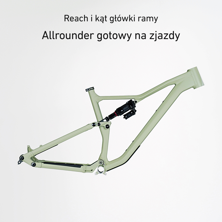 Płaski kąt główki wynoszący 65° w kombinacji z dużym reachem, sprawia, że Ground Control zachowuje się jeszcze lepiej na zjazdach.