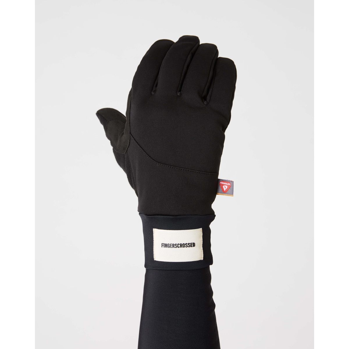 • FINGERSCROSSED patch with logo lettering on the outside of the wrist