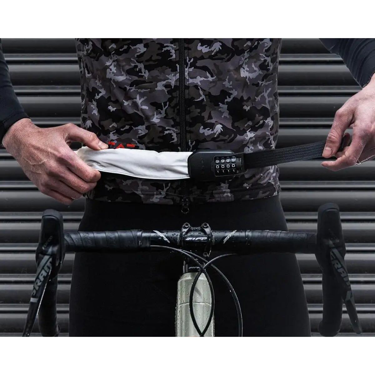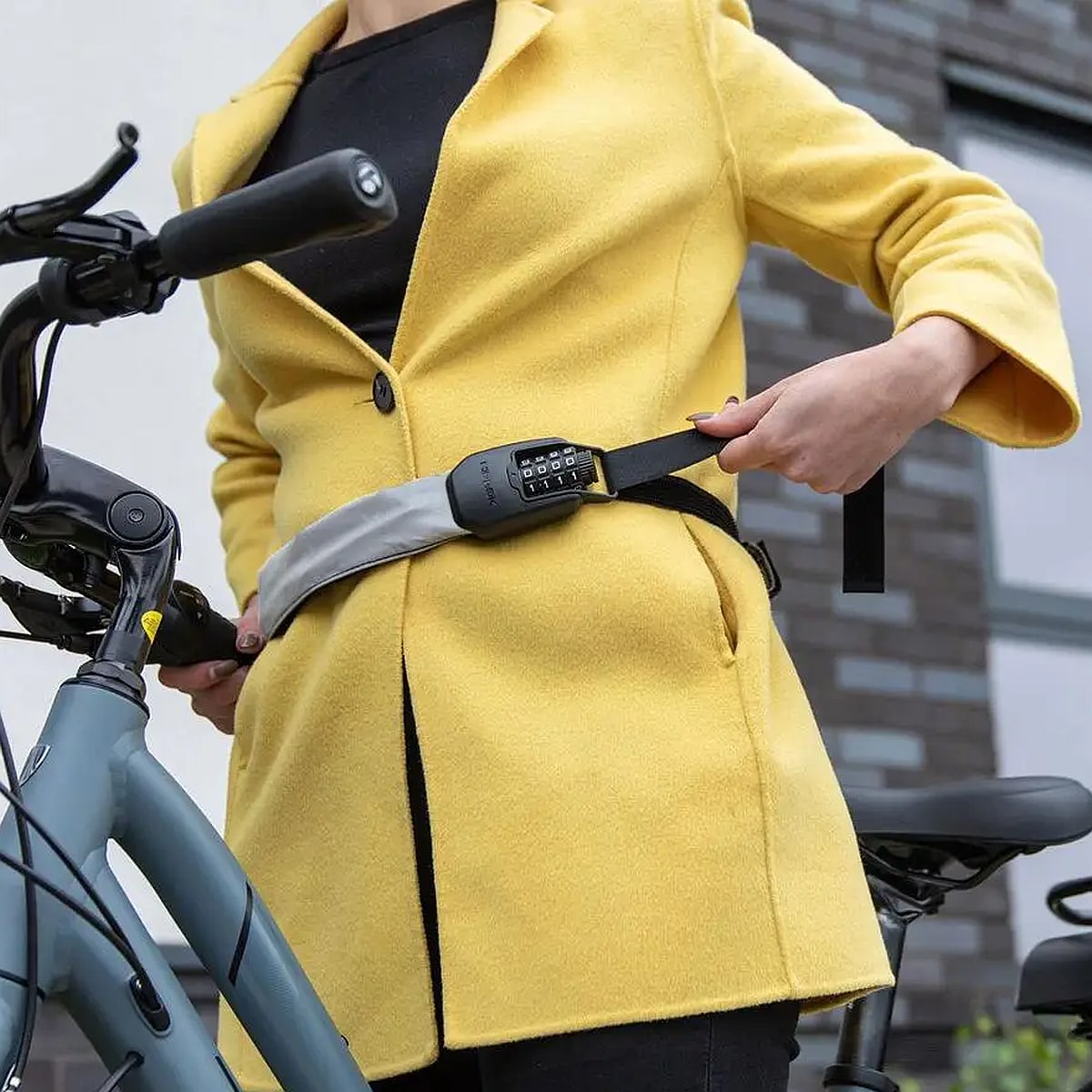 During the ride the lock is placed around the waist like a belt. You can adjust the circumference quickly and individually with a Velcro fastener. Meanwhile, the combination lock remains unlocked so that you can put the SPIN on and take it off in seconds.