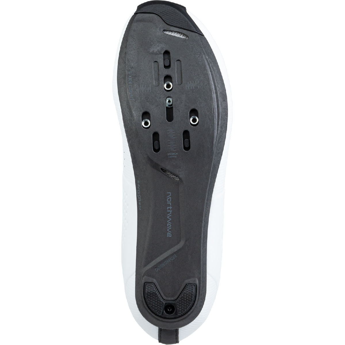 Thanks to a lightweight but particularly durable carbon composite material blend, this road sole offers an ideal balance of performance and comfort. The anatomical Powershape design provides support and a good feel, especially in the foot arch. This shoe sole also has vents and a replaceable heel pad and is also compatible with Speedplay/Wahoo pedals using the optionally available northwave Speedplay adapter.