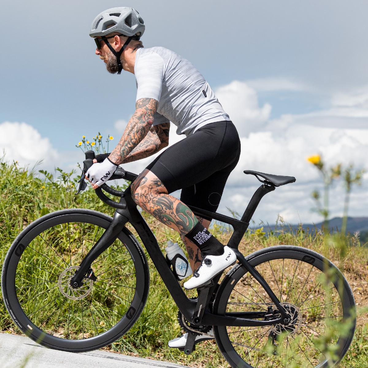 Unleash the storm within you: The STORM CARBON road shoes from northwave are the high-tech tools on your way to top speeds. In addition to their carbon fibre composite sole, these shoes impress above all with their high breathability, which will benefit you during intense training sessions and demanding tours.